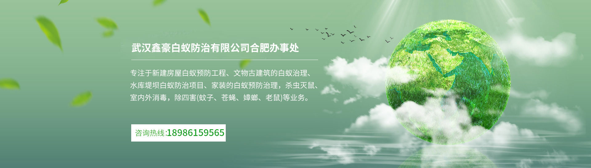 武漢鑫豪白蟻防治有限公司,合肥辦事處, 是白蟻防治行業協會單位, 本公司自成立以來本著誠信、便捷、服務為先的宗旨, 擁有一批從事白蟻研究專家及白蟻防治工程技術團隊, 給客戶提供貼心周到的服務, 贏得了眾多單位的支持和信賴, 樹立了良好的社會信譽,為保護國家財產免受蟲害帶來的損失, 作出了應有的貢獻。
